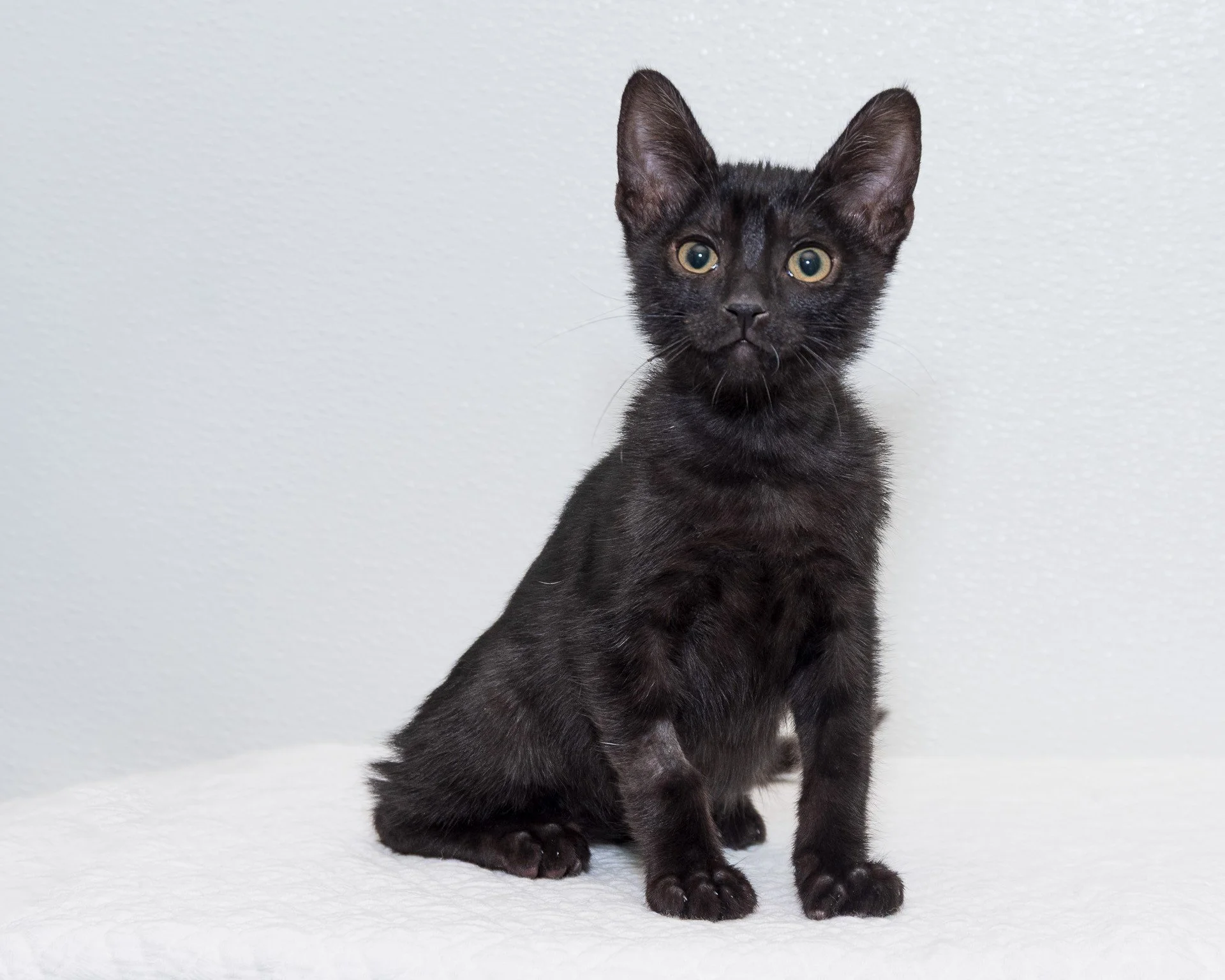 Poe may look dark and brooding but he is a purry pal, looking for a lap to cuddle in! His biscuits are to die for and his yellow eyes will follow you around the room (to make sure you’re not trying to hide the treats!) Poe and his sisters were brought in when they were ity-bity, and made the whole staff fall in love! Even though they were street kittens, they knew what the wanted and it was snuggles! Now, Poe is finally ready to start his very own adventure! If you want a shadow that makes all the wonderful kitty sound we love, come meet Poe today!