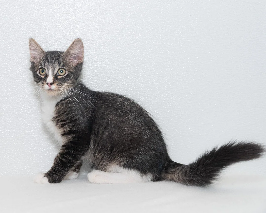 Meet Voodoo! His name may seem creepy, but he is an absolute delight! He’s a playful, rambunctious kitten with lots of personality to boot. Voodoo and his siblings came into the shelter very nervous and very spicy! But, after spending time with our staff and volunteers, they’ve come to find they like attention! If you have an extra spot on your couch and in your heart, come say hello to Voodoo!