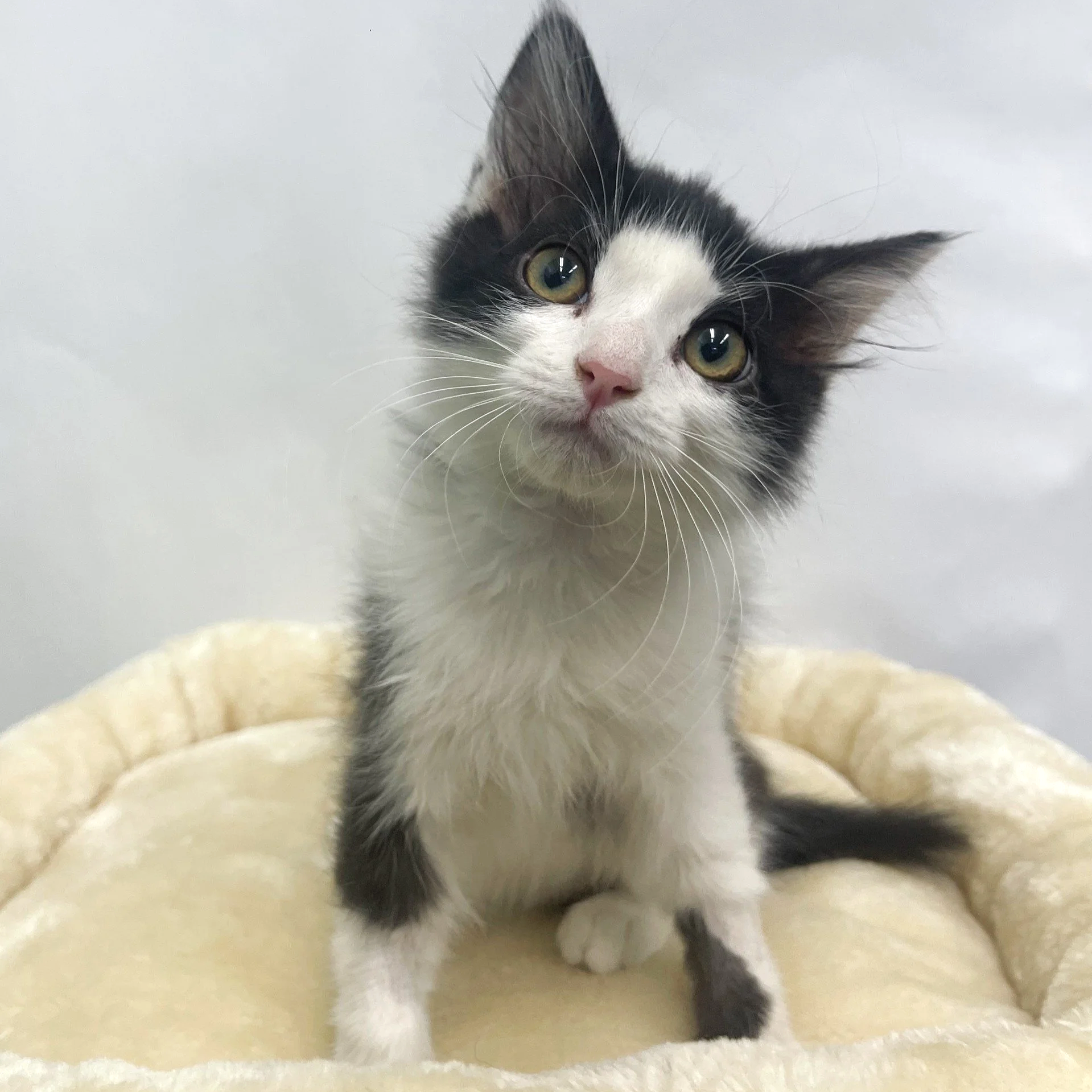 My story: Meet Bramble. For a kitten, he is one smooth cat. He and his brother Scramble were found stuck in a sticker bush, needing a rescue. Bramble immediately enjoyed all the wet food and attention. But, he’s a “go slow” kind of guy. Our foster says “He will relax next to you on the couch and prefers a calm approach.” With such bright eyes and that cute little nose, Bramble is a real catch! Note: This kitten will be available for adoption at our annual Caturday Breakfast and Bingo, Saturday April 25th @ The Rowen Palm Springs. Event runs from 9am to 11am in the Sky Ballroom.