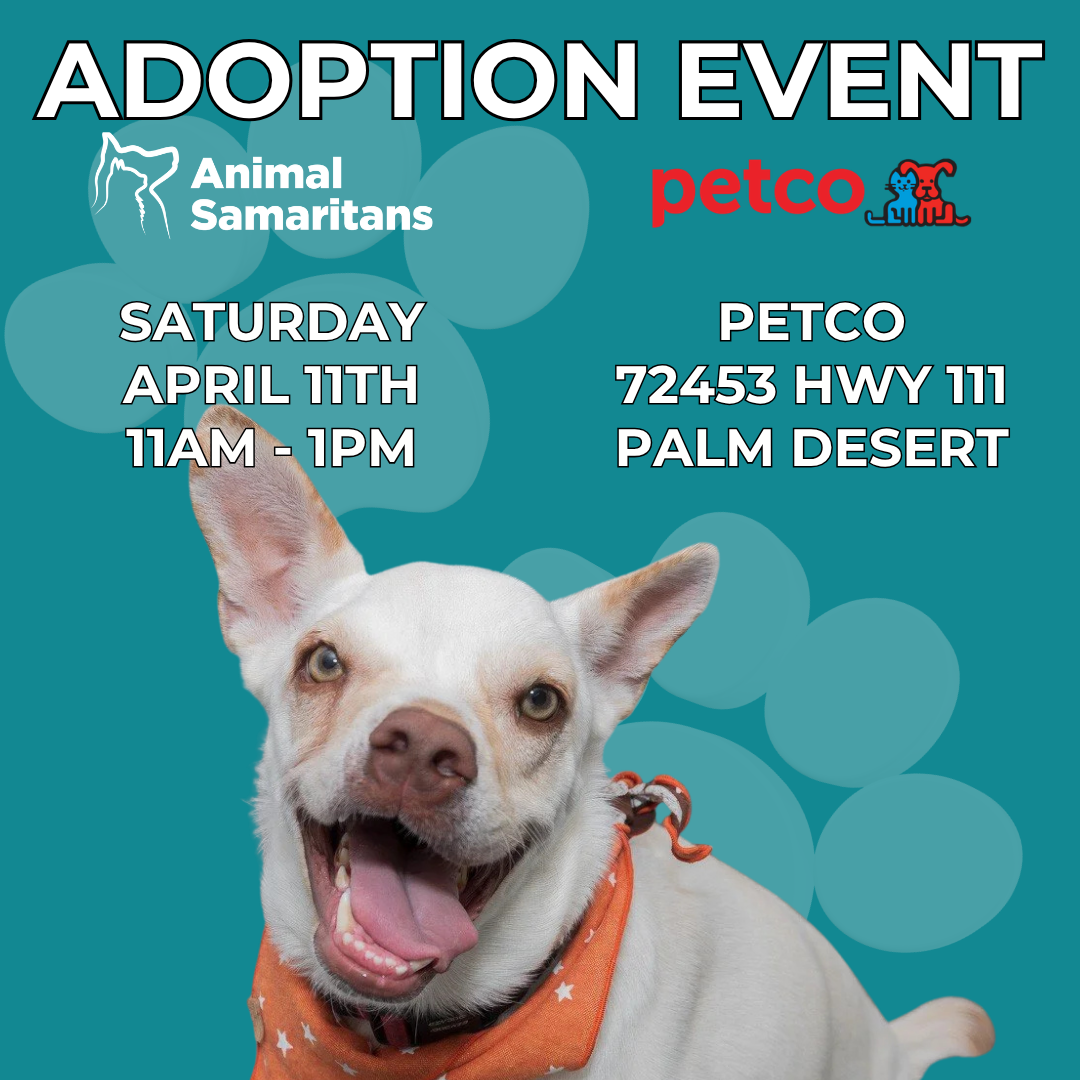 Join us tomorrow, Saturday, April 11th from 11am to 1pm at PetCo in Palm Desert.